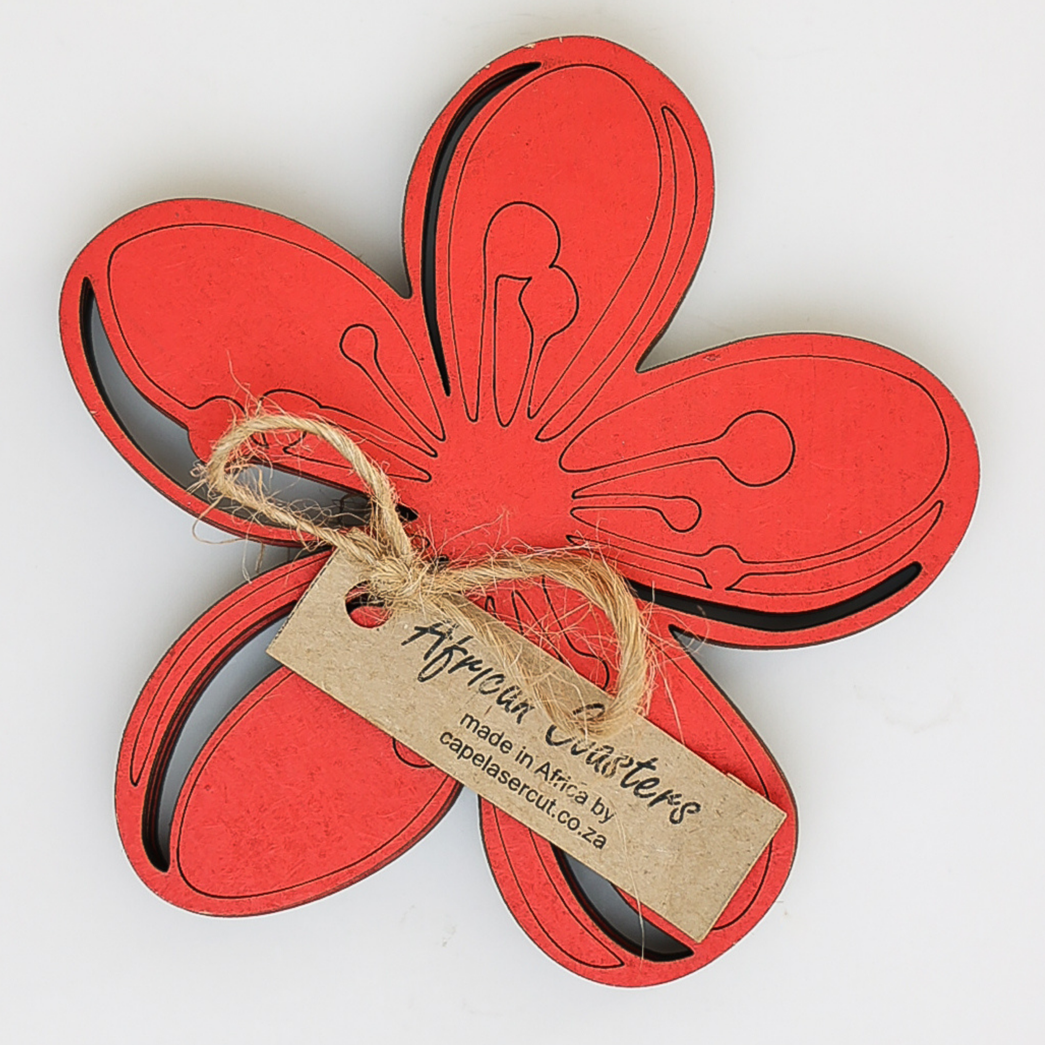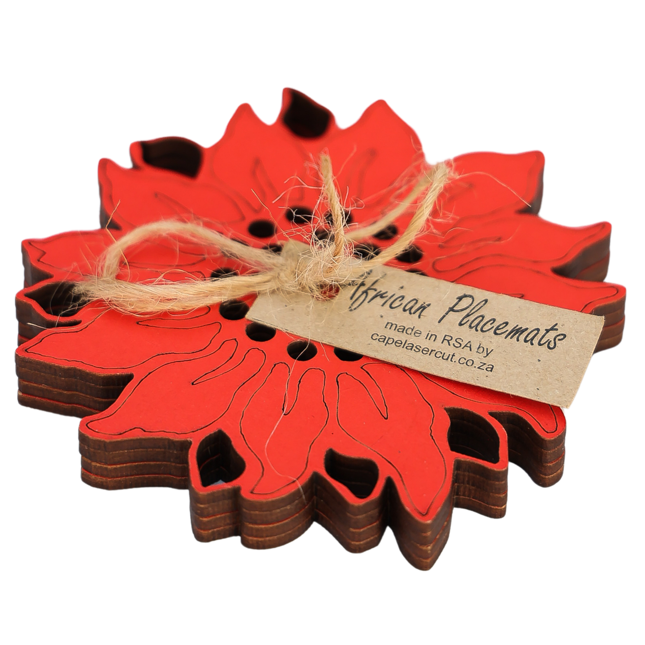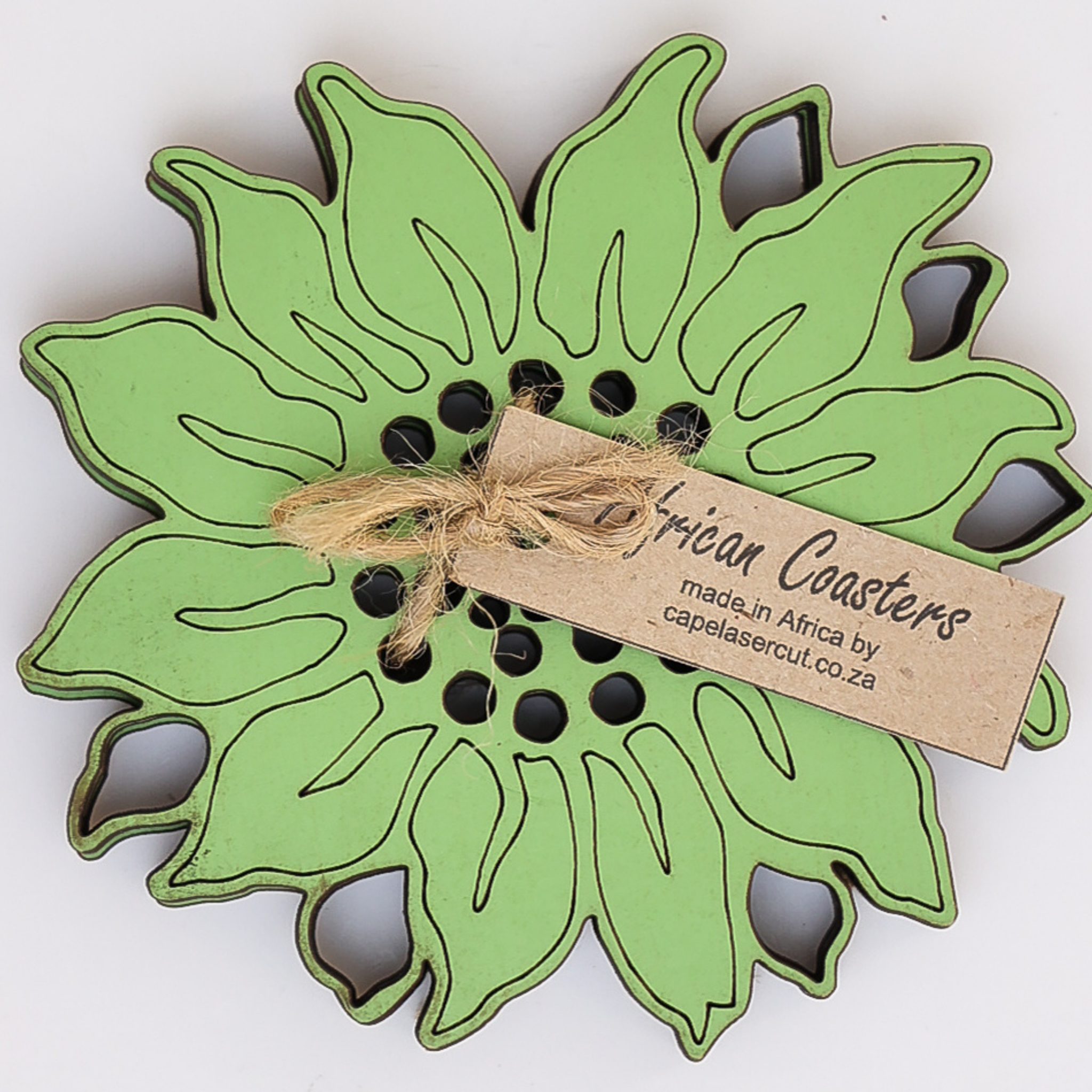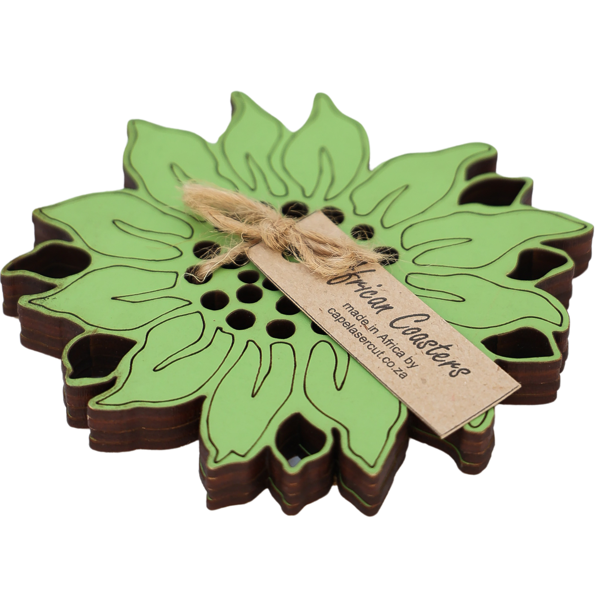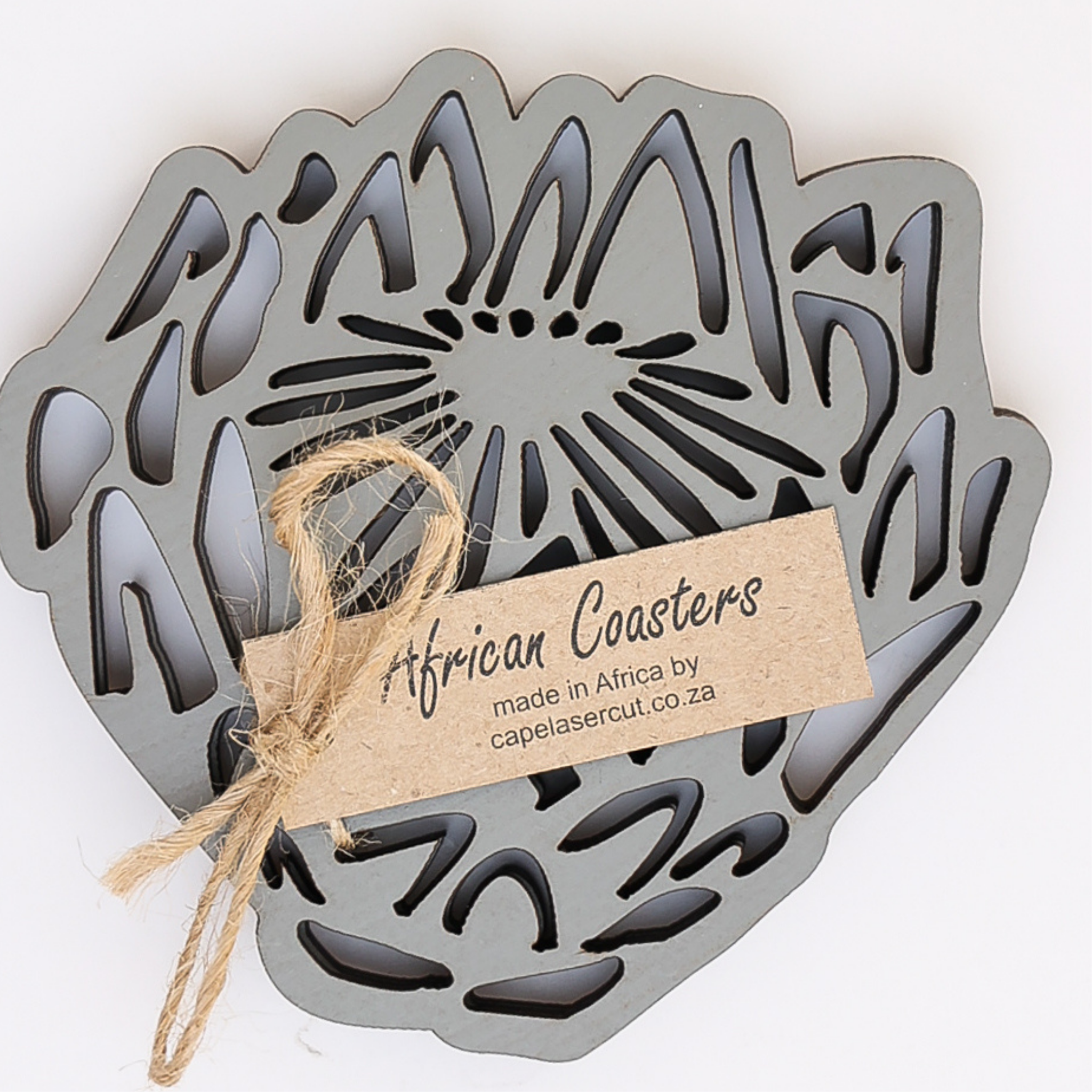 Elevate your table setting with our stunning collection of 4 finely-crafted coasters. Each one features a delicate flower design, meticulously laser-cut from premium MDF for an effortlessly sophisticated touch.. Made in South Africa, these coasters are a tasteful addition to any home, exuding a sense of elegance and exclusivity.