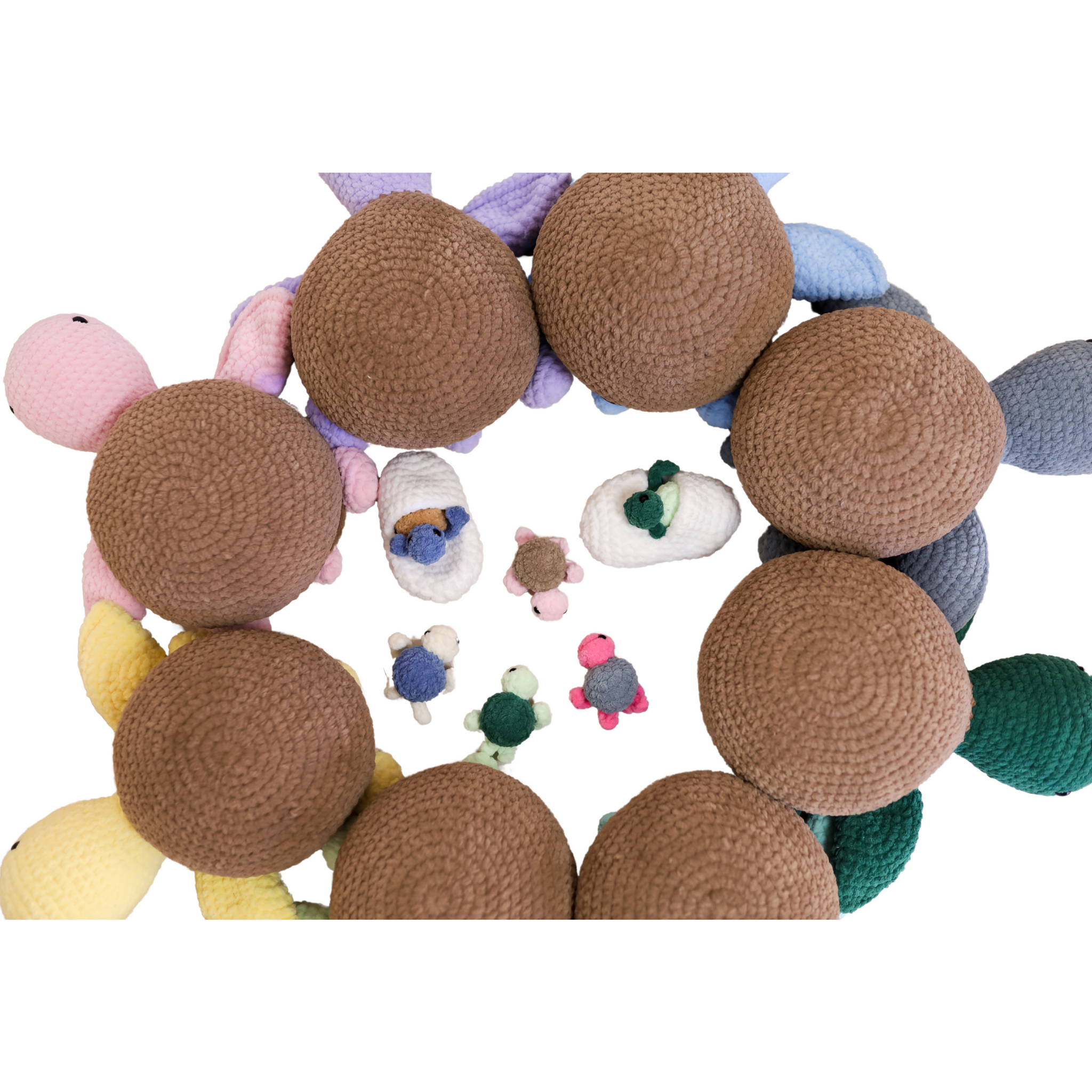 Discover the magic of our mama turtle toy, featuring a pouch inside where your little one can hide the two babies in an egg pouch. All our mamas are carefully crafted just for you.
