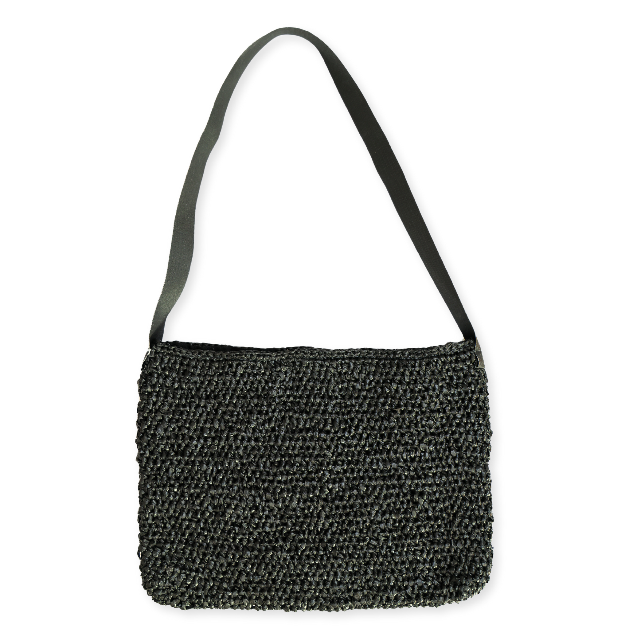 This marvellous cross-body bag is crocheted from empty bread bags, with a handle crafted from sturdy upholstery material.